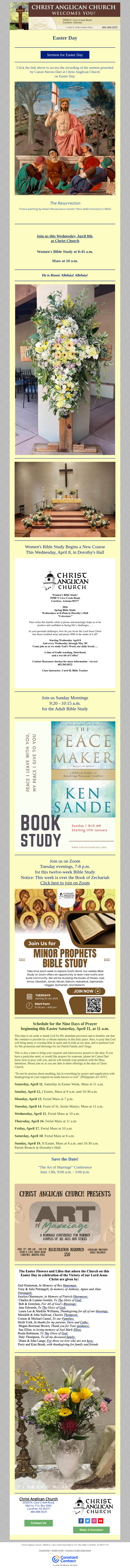 - 4/1 Holy Communion 10 a.m.; Evensong and Tenebrae Service 7 p.m.